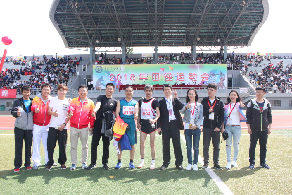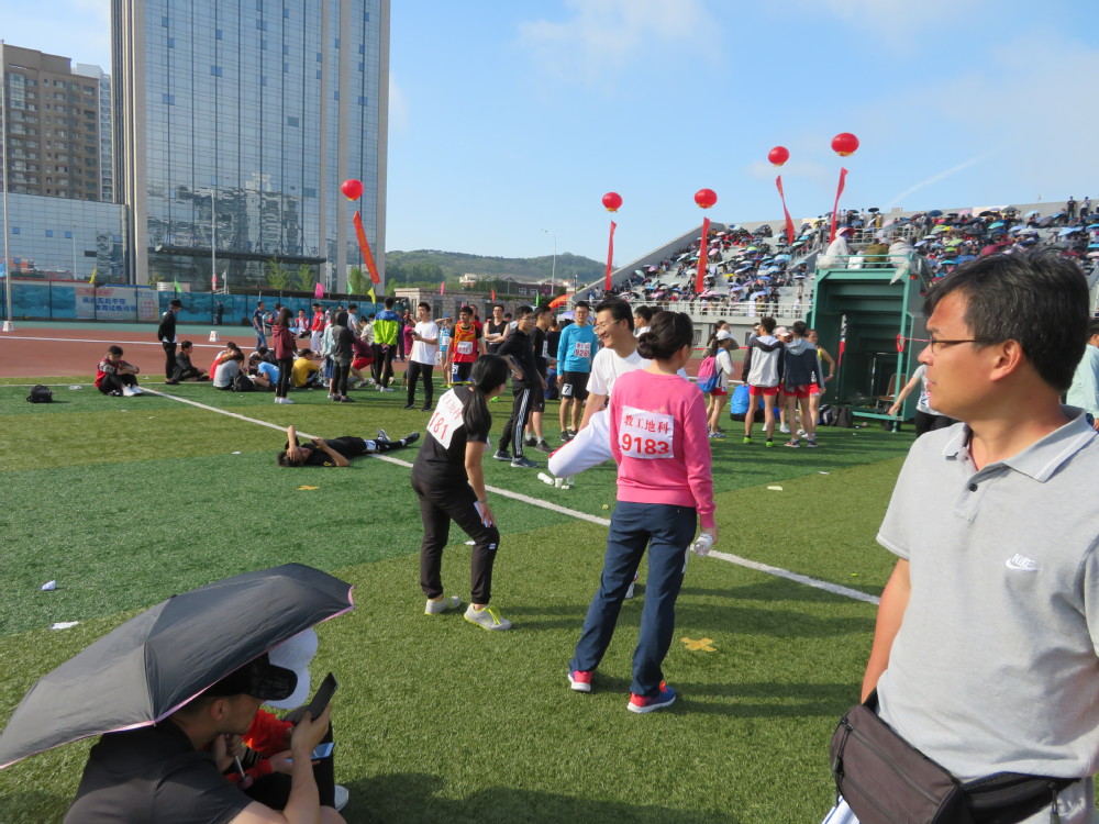 由王斌、马存飞、远二辉、玉素甫江.艾买提四位老师完成的男丙4*400米,拿下冠军,创造了奇迹,确保了团体总分第一!这是一次伟大的接力赛:远二辉超了3、4个对手,玉素甫江.艾买提曾在弯道被理学院超越,冲刺阶段又反超回来,真是好样的!