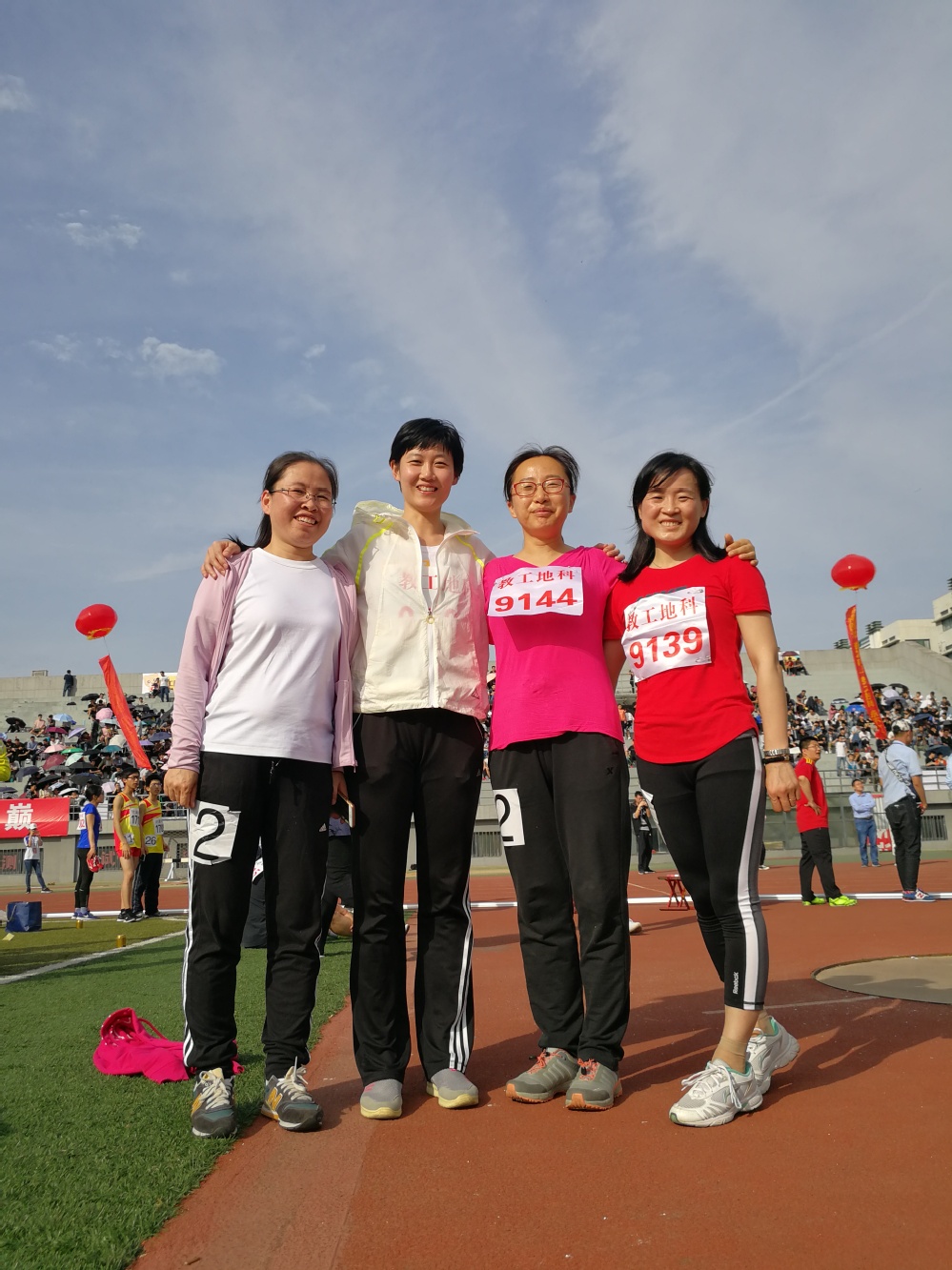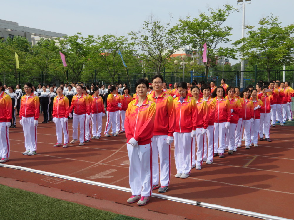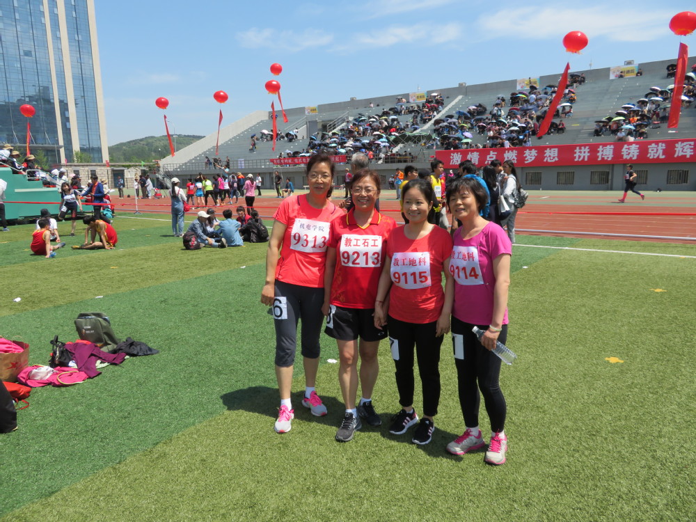 跟友队合了个影,石工李爱芬老师经常在操场跑,年龄大照样可以拿第一,也值得咱们女同胞学习!