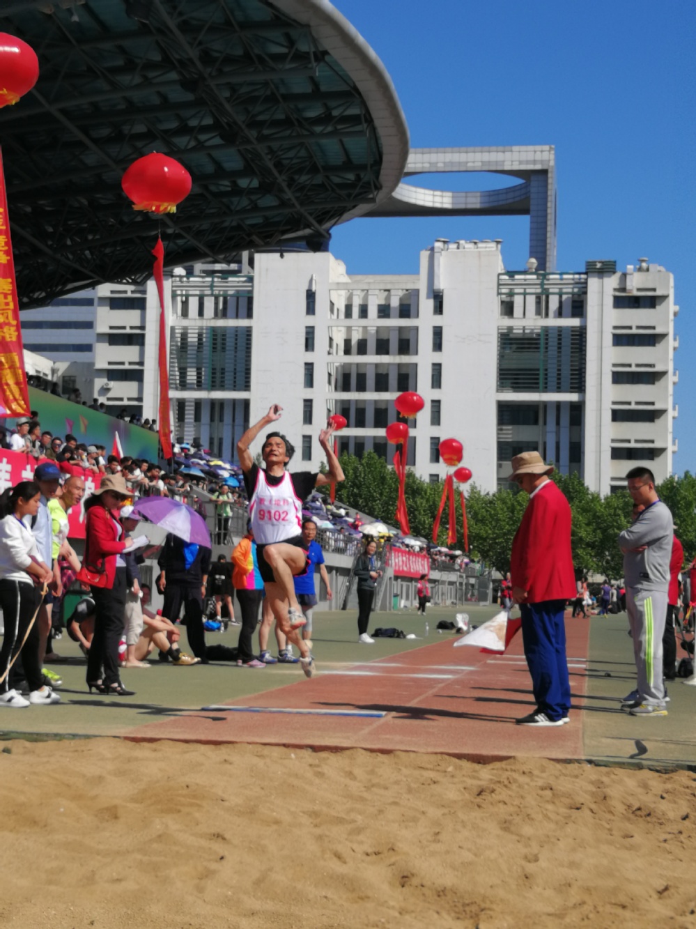 张军华老师从小学开始到去年,从来没拿过跳高名次,这次拿到了第五。主要是看到了第一天我们分超过了机关,想实现一下战胜机关的梦!