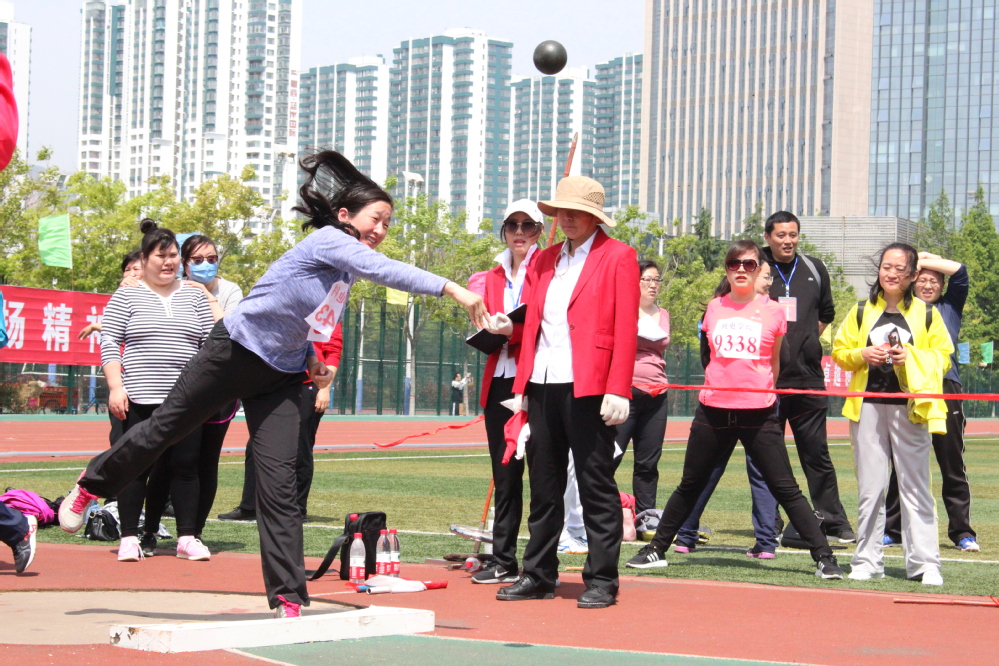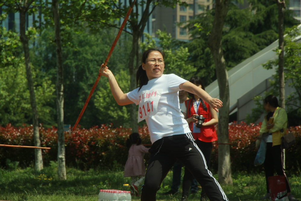 陈雪老师在投标枪,动作很规范!标枪第一、第二都是我们院的!