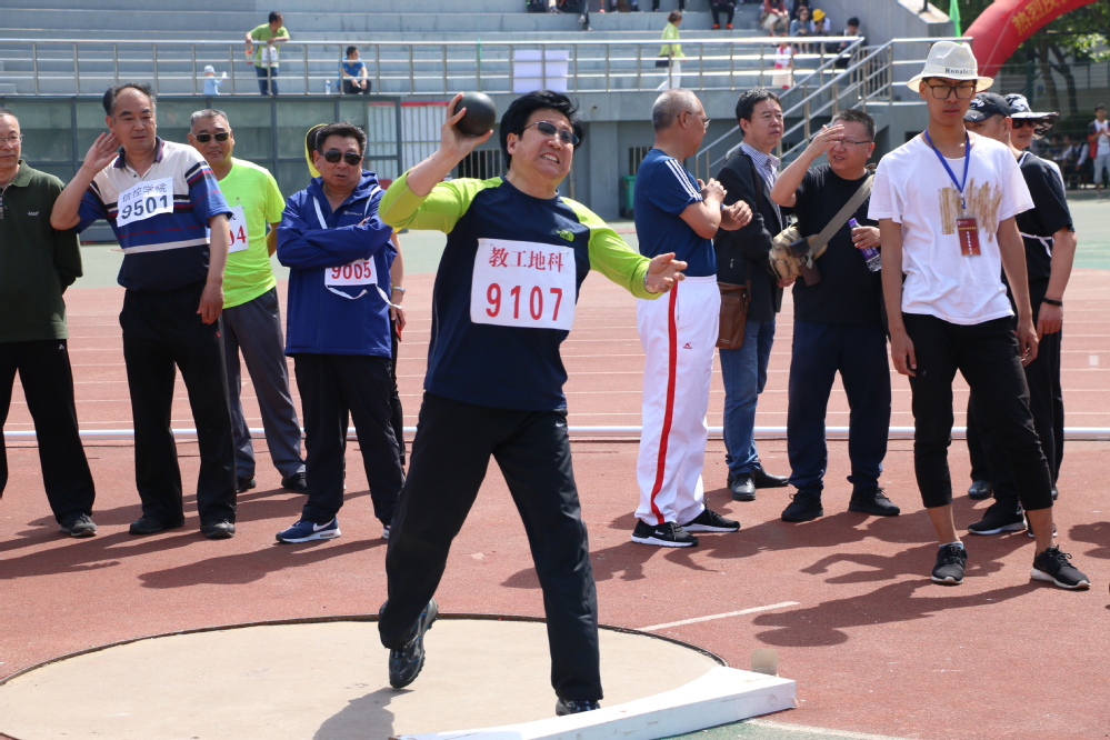 据说是谭宝海老师劲很大,照相的不敢站在正面照。铁饼冠军,是系室领导里唯一参赛并拿冠军的,值得其他系领导学习!