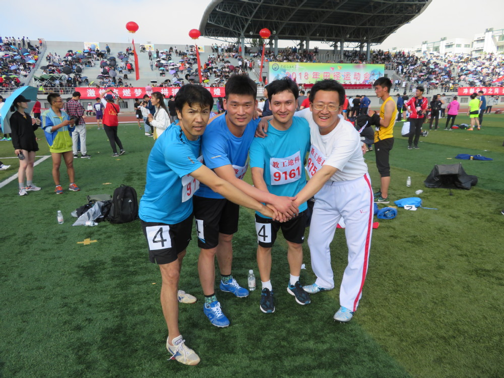四杆老枪勇夺男甲4*100米冠军,极大地鼓舞了全队为地院拼搏的士气,激发了广大教师的集体荣誉感,吹响了进军第一的集结号!有即兴诗为证!