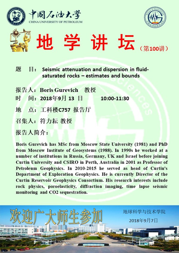 【地学讲坛第100讲】关于Boris Gurevich 教授学术报告2的通知