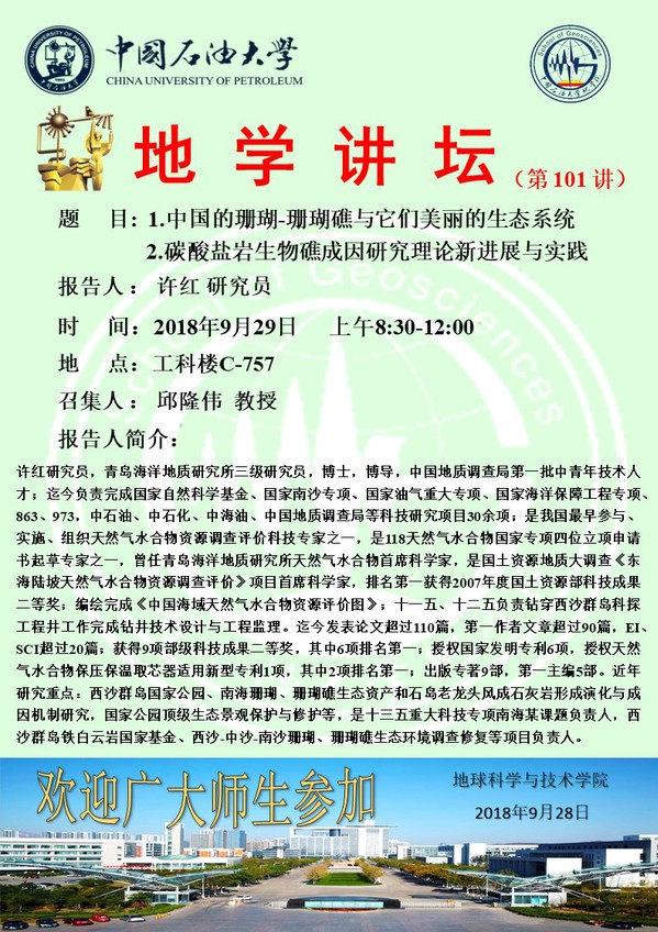 【地学讲坛第101讲】关于许红研究员的学术报告通知