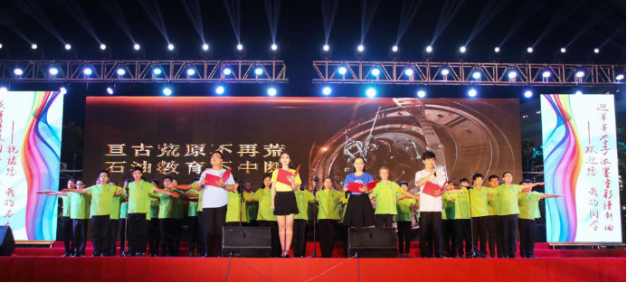 “六十五年弦歌不辍,强国一代续写华章” 9月26日晚,在一片欢呼声中,学校2018级迎新晚会成功举办。我院50余名师生参与了诗朗诵《岁月如歌》,歌曲《我为祖国献石油》等诸多节目,用精彩的表演欢迎千禧学子,祝福母校65岁生日。