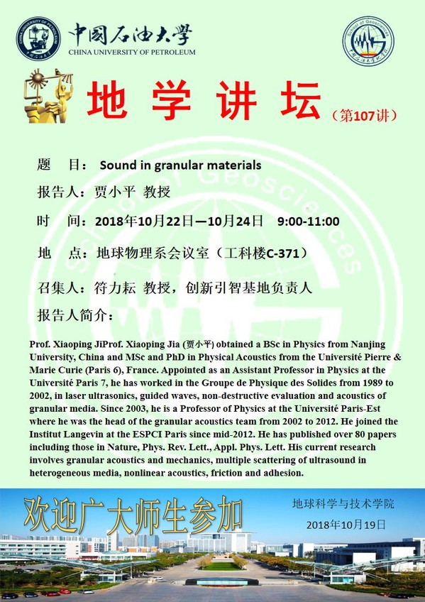 【地学讲坛第107讲】关于贾小平教授的学术报告通知