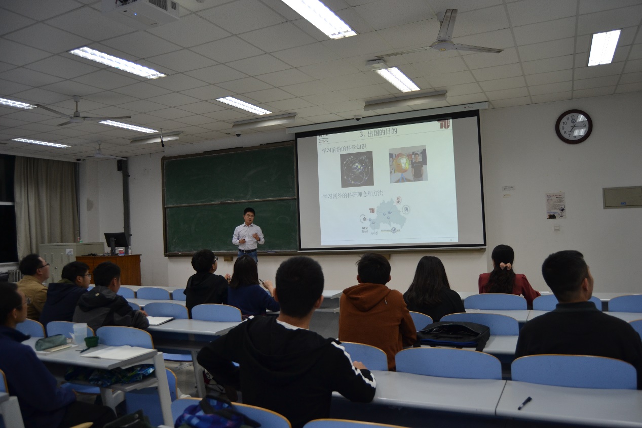 10月22日晚上召开的地学院研究生、博士生国际交流宣讲会由贺凯飞老师主讲,辅导员董晓真老师参加。贺老师从“为什么要出国学习”展开,从学科知识、经济来源、拓宽眼界几个方面为同学们介绍国内外学习生活的不同之处和国家为支持大学生、研究生和博士生出国提供的优厚条件。之后又为大家介绍了我校公派留学项目和国家奖励项目以及申请条件,并主要就即将开始申请的国家创新型人才国际合作培养项目进行了详细的讲解及动员;并鼓励大家打好语言和专业课基础,积极申请,希望同学们能把握时机,走出国门,学习学科前沿知识,努力成为国际人才,为建设双一流学科助力。