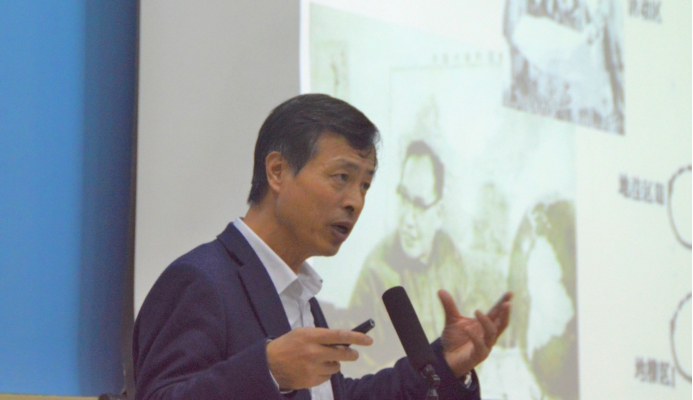 课堂上,林承焰教授从达尔文的生物进化论讲起,由古及今,用通俗易懂的语言带学生们走进地学世界。十九世纪的生物进化论、二十世纪的板块构造理论、鲍马层序与浊流理论、陆相生油理论,丰富的知识大餐让在场学生切身感受到了地学之大、地学之美。