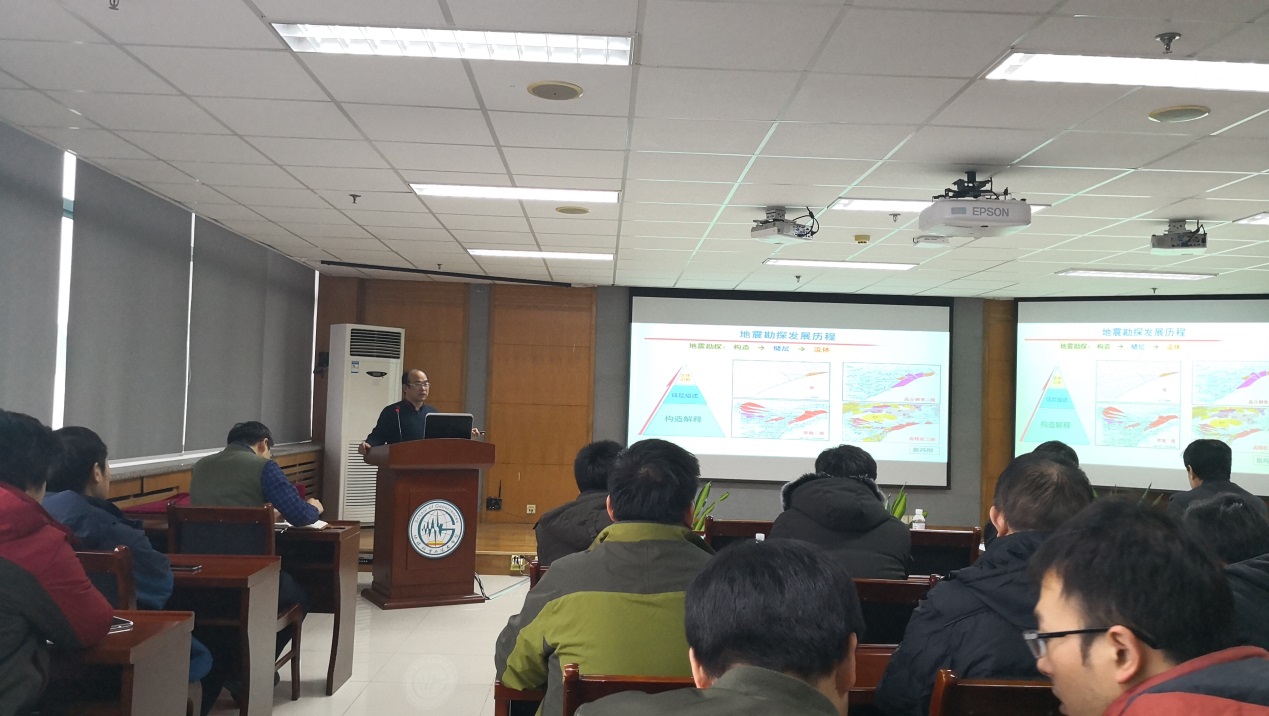 上午的学术交流会阶段,会议共安排六个学术报告,印兴耀教授和周辉教授等六位专家教授分别针对当前地球物理学科领域热点的五维地震数据解释、地震反演过程中的衰减补偿、高温高压地震学、复杂地质体地震成像、宽频带岩石物理测量技术、高维地震数据高精度重建等学术问题做了精彩的学术报告,针对每一个学术报告,都有师生提出了专业的问题并进行了深入的讨论。