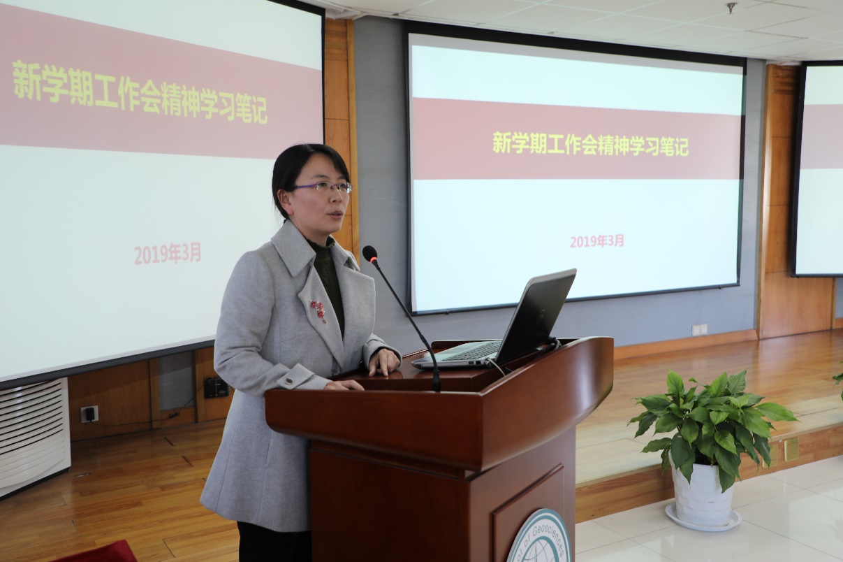 学校党委办公室、校长办公室副主任,学院挂职副院长朱华传达学校新学期工作会精神,并解读学校党委书记王勇和校长郝芳院士讲话。朱华表示,2019年是政治性很强的一年,是攻坚克难的一年,是狠抓落实的一年。从学校党委书记和校长的讲话精神传递出学校领导班子攻坚克难、狠抓落实的决心。