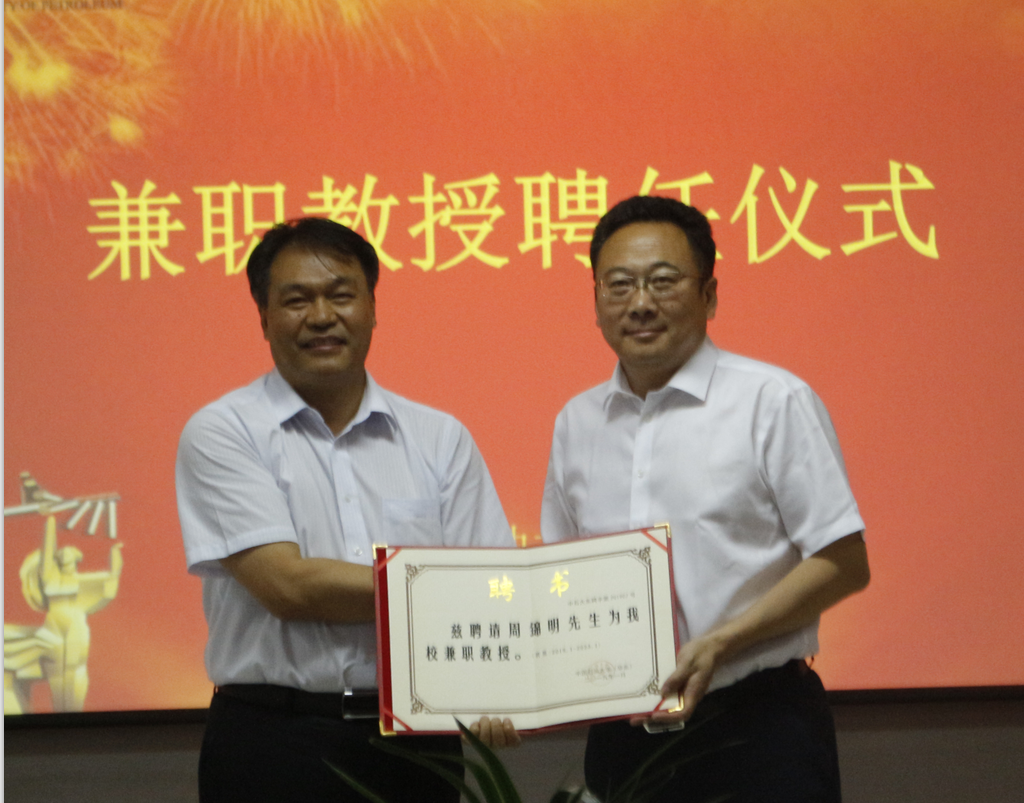 操应长为郭焦锋、周锦明颁发兼职教授聘任证书。他表示,目前学校正在扎实推进“双一流”建设,亟待人才,渴望人才,希望两位校友在未来更多地参与学校的建设发展,为学校培养更多更好的人才。