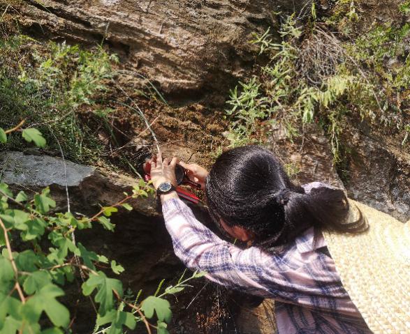 (资源专业学生在测量地层倾角 周宏飞摄)