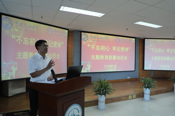 9月23日下午,地学院党委召开“不忘初心、牢记使命”主题教育动员部署会。地学院党委书记张卫东作动员部署,学校“不忘初心、牢记使命”主题教育第一指导组组长、纪委副书记张伟到会指导。学院班子成员、党委委员、教工党支部委员会成员、机关干部以及党员代表参加会议。