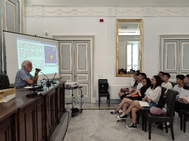 那不勒斯费德里克二世大学的Benedetto De Vivo教授做了关于环境地球化学:了解人类活动对地球表面的影响主题报告;Giuseppe Rolandi 教授做了关于火山形成机制讲座,为后续的Vesuvius火山实地考察环节打下了基础;Alberto Fortelli 博士做了如何通过云和太阳预测天气的讲座,有趣的课题抓取了学生们的眼球;Corrado Bruni 博士讲授了山区地层中的石油储集层,给资源勘查专业的学生一定的指导意见。最后;Antonio Panico教授的垃圾分类再利用讲座,题目紧扣今日中国国情,给垃圾循环利用提供了理论依据。