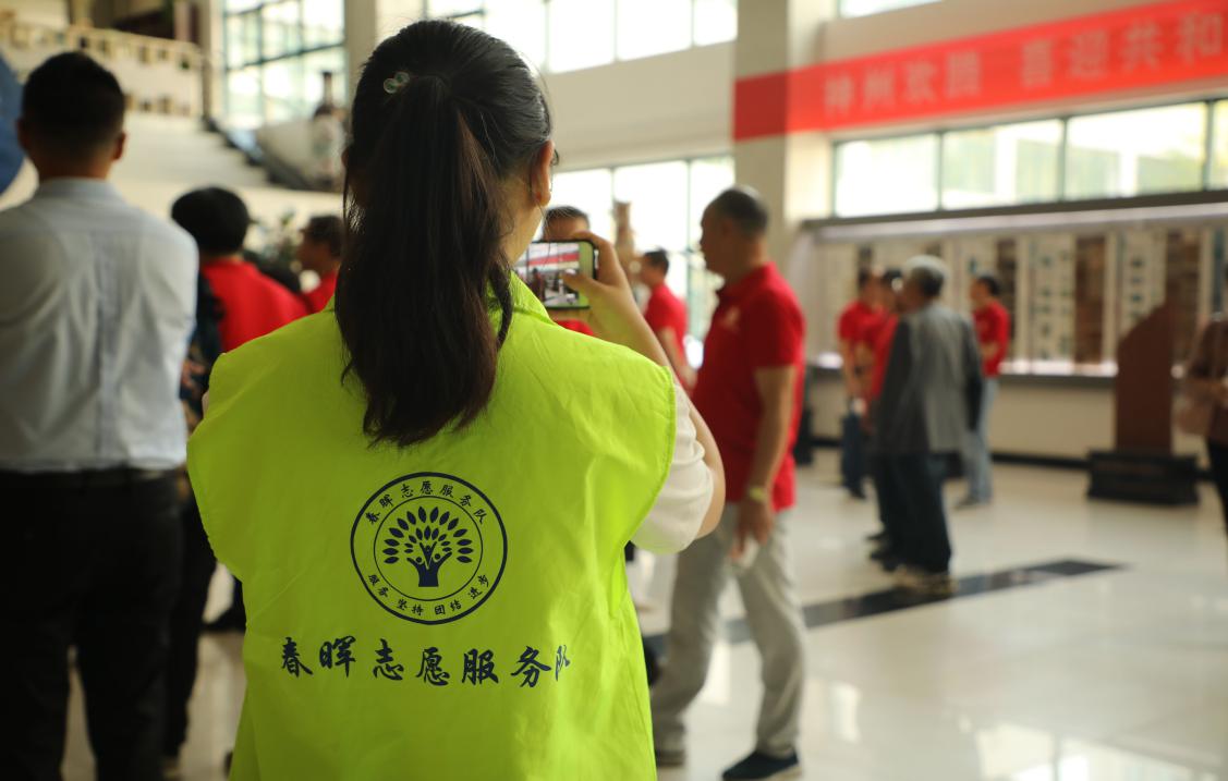 身穿黄绿色马甲,时刻洋溢热情微笑,他们就是校庆活动中最忙碌,最壮观的一支队伍——志愿者。经过前期的考核选拔,业务培训之后,志愿者在校庆到来之际光荣上岗。茶歇布置,景点引领,在校友身边总有他们的身影来回穿梭,保证让每一个校友都有回到家的温馨的感觉。同样忙碌的还有身穿红色马甲的小记者们,他们端着相机装备,为校友们记录下点点滴滴难忘的瞬间。