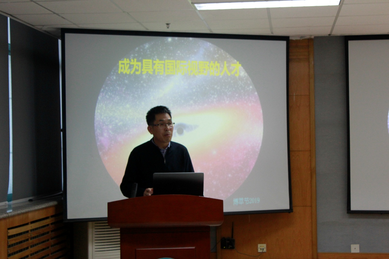 开幕式的第二阶段邀请学院教授委员会主任刘可禹教授做客第70期“光耀石大”名家讲坛,以《如何预备自己成为一名具有国际视野的人才》为题,结合自身海外求学工作经历,从家国需求、具有国际视野的人才特质、如何成为具有国际视野的人才等几个方面,对研究生提出“胸怀祖国、放眼世界成为有国际视野的人才”的期望。