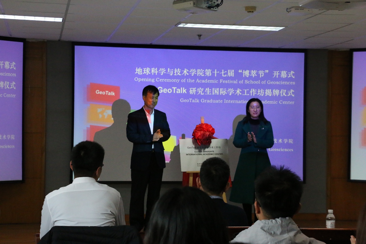 吕宏凌部长和林承焰院长共同为GeoTalk研究生国际学术工作坊揭牌 崔洲摄影
