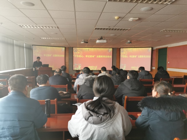 1月10日,按照学校“不忘初心、牢记使命”主题教育的工作安排,学院召开 “不忘初心、牢记使命”主题教育总结大会,深入学习领会习近平总书记在“不忘初心、牢记使命”主题教育总结大会上的重要讲话,认真贯彻落实学校总结大会精神,总结学院主题教育开展情况和工作成效。学院领导班子成员、党委委员、各系和机关干部等参加会议。