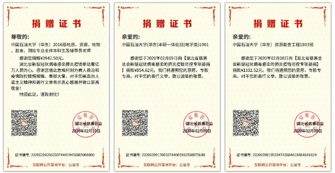 学院2016级学生党员自发缴纳特殊党费共计3942.5元部捐献给湖北慈善总会,勘查1802 班迪娜尔·吉开别克将自己勤工助学挣来的2000元全波捐献武汉,截至目前地院学子累计捐款一万余元,大家用自己的真情为抗击疫情尽绵薄之力。