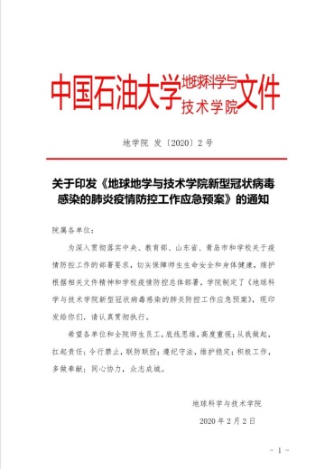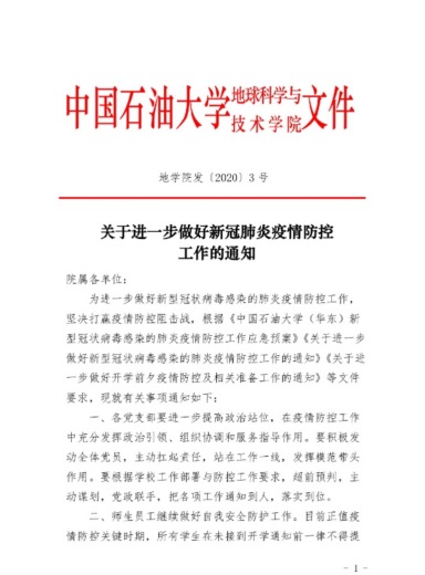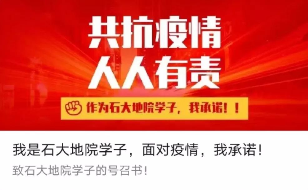 同舟共济度时艰,众志成城战“疫”情!我们相信,学院师生顾全大局、从我做起、奋发有为,一定能够取得抗击疫情的全面胜利。到那时,让我们带着灿烂的笑容,重逢在美丽的石大校园!