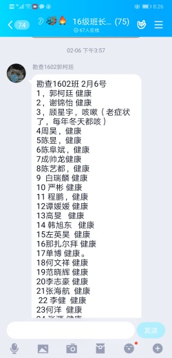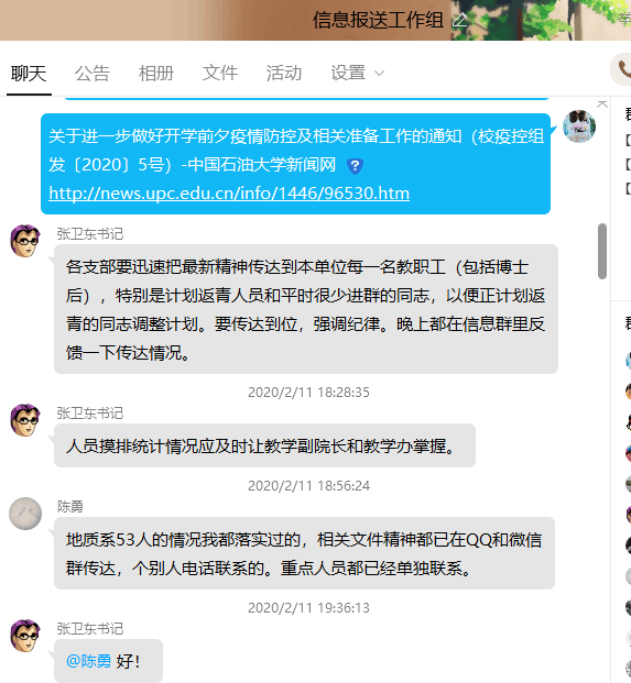 “地质系所有老师及家人身体健康,未返青7人。”“已通过微信、电话、QQ,把学校文件精神传达给2016级每一位同学”这是负责报送信息的老师们每日的工作日常。“必须落实到每一个人的情况才算安心!”辅导员霍宁说出了每位老师的心声。