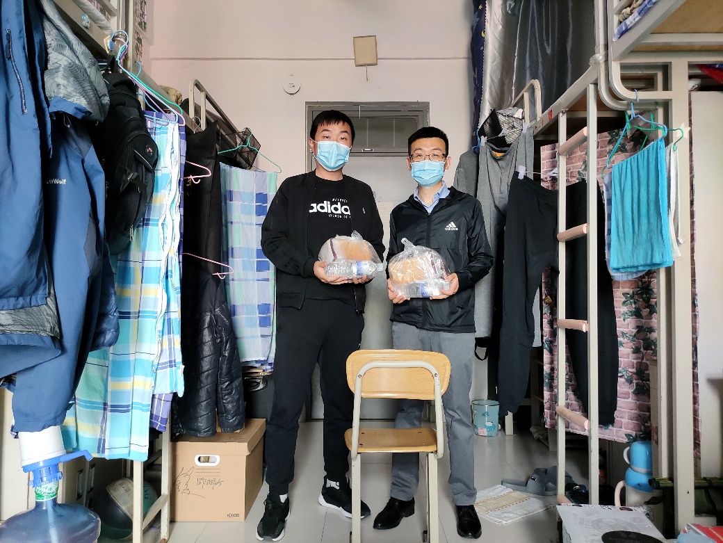 学院团委书记、研究生辅导员霍宁宁表示,“看到同学们平安归来,作为辅导员感到非常开心,欢迎同学们回家!希望同学们圆满完成学业,学院永远是大家坚强的后盾!”学院为每一位返校学生准备了“爱心餐包”和“爱心寄语”,让同学们及时补充能量,尽快融入校园生活,资源研1901班的柳卓到校后在朋友圈“炫耀”:学校的一系列措施真的好,下飞机出门就看到接待点,可以容纳50个人的大巴车坐了十多个人就出发,到学校后,工作人员消毒测温、免费做核酸检测、然后领防疫健康包,回宿舍时老师已经把饭放到宿舍,既细心又暖心,每位老师见到我第一句话就是“欢迎回家”,真的激动又感动!