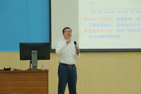 李国欣从中国油气行业辉煌历史、面临的严峻挑战、肩负的光荣使命三个角度,为2020级研究生讲授开学第一课,深入讲解了十三五规划以来中石油油气勘探开发主要成果以及中石油在多项技术、思路和各大盆地或地区上取得的进展。“岩性地层、碳酸盐岩、前陆、成熟探区、非常规油气是过去十年至未来十年油气开发的重点。”李国欣指出,中石油走高效勘探的道路,即重点盆地集中勘探、新区新领域风险勘探、高勘探程度区精细勘探、多种资源综合勘探等。经过十三五的攻关,在风险勘探和甩开预探取得33项重大突破和新发现,集中勘探形成了23个规模储量区,为“稳增油气”国家发展战略夯实了资源基础。但面对当前中国油气面临勘探程度不断提高,地下条件日趋复杂,勘探难度不断加大等现状,认为油气勘探开发必须变革适应。“我国油气对外依存度不断攀升,国家能源安全形式严峻。”通过分析即将出台的国家油气体制改革政策,全球经济下行、油价非理性暴跌,李国欣强调,油气行业必将引发深刻变革,油气行业必须抱团取暖,油气领域科研工作者必须自省自强。希望大学生要充满对知识的渴望与好奇心、有协作精神和团队精神、有广阔的视野和敏锐的嗅觉、有挑战精神和怀疑精神、有良好的健康习惯,努力成为全面发展的新时代大学生。