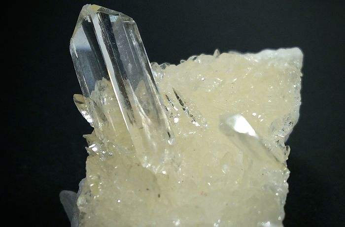 鉴定特征:以其硬度低和具有{010}极完全解理为特征。与碳酸盐矿物的区别是遇HCl不起气泡。