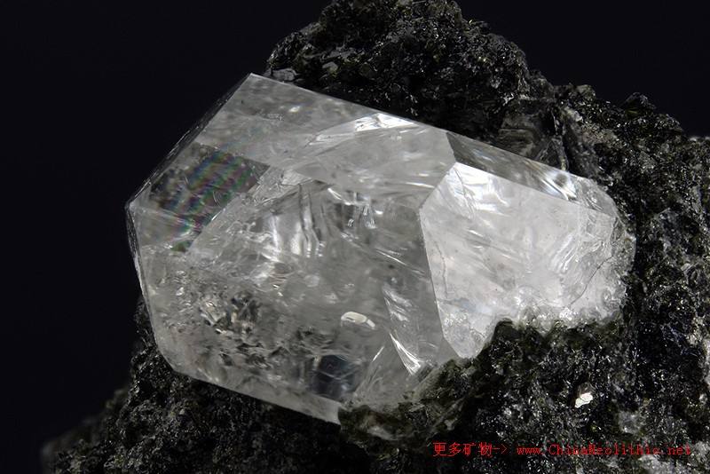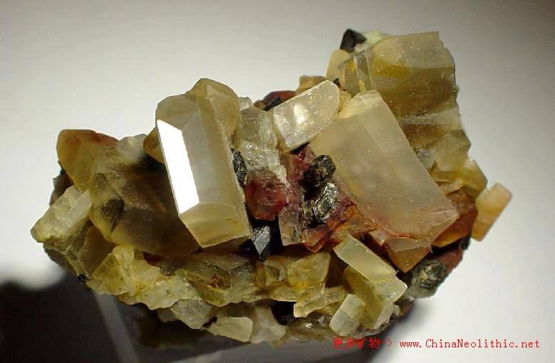 物理性质:白色或灰白色,有的拉长石具变彩;玻璃光泽,{001}及{010}解理完全,其 二者的夹角为86°24' -85°50';硬度6。密度2.61 ~2.76g/cm3,随含An分子增多而增大。鉴定特征以形态、 解理以及较浅颜色为特征。也可依据所属岩石类型,大致区分出酸性、中性和基性斜长石。精确鉴定需光性数据。
