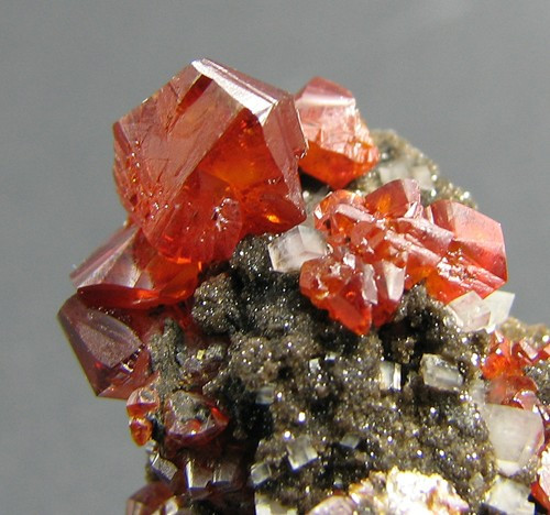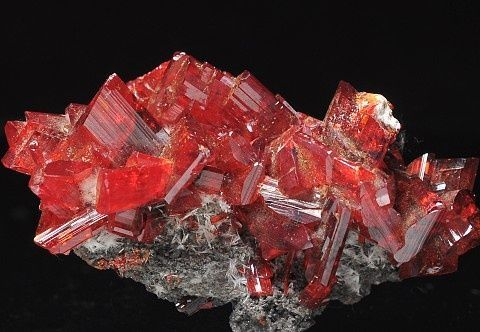 [物理性质] 鲜红色,有时表面呈铅灰的销色;条痕红色;金刚光泽;半透明。解理平行{100}完全。硬度2~2.5。相对密度8.05~8.2。成分纯净者,导电性极差,如含0.1%的Se或Te时,其导电性就显著增加。
