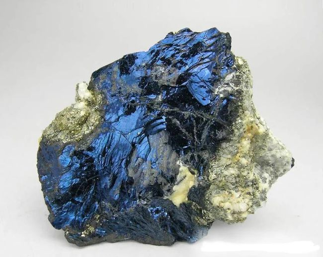 [物理性质]铅灰色或钢灰色,表面常有蓝色的锖色;条痕黑色,研磨后呈褐色;晶面常带暗蓝锖色;金属光泽;