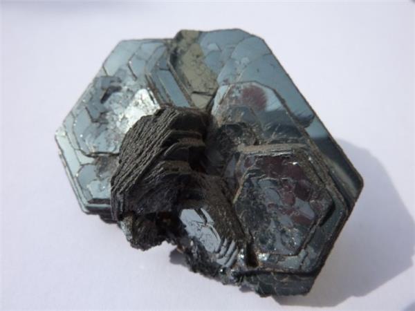 [形态]单晶常呈板状,主要由板面(平 行双面)与菱面体等所成之聚形。集合体形态多样:显晶质的有片状、鳞片状或块状;隐晶质的有鲕状、肾状、粉末状和土状等。赤铁矿根据形态等特征,又有如下的一-些名称:具金属光泽的片状集合体者,称镜铁矿( specularite) ;具金属光泽的细鳞片状集合体者,称云母赤铁矿( micahemaite) ;呈鲕状或肾状的称鲡状或肾状赤铁矿;粉末状的赤铁矿称铁赭石( red ocher)。