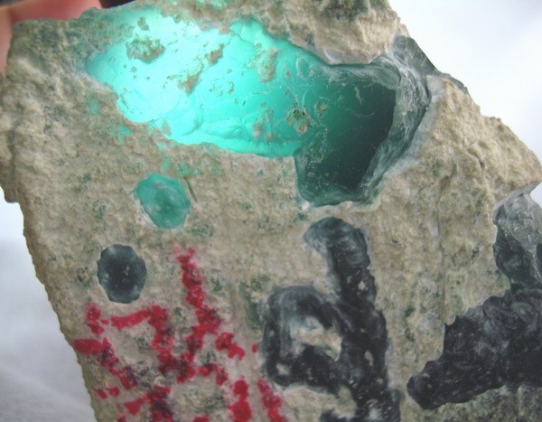 [鉴定特征]根据其颜色、光泽、较小的硬度、纤维状或块状形态及产状加以识别。蛇纹石矿物之间的区别较困难,只有通过扫描电镜、X射线法、热分析、光性鉴定来进一步精确确定。