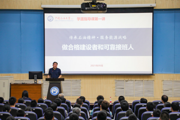 “加大国内油气勘探开发力度,保障国家能源战略,关键要靠理论创新和技术攻关,这需要在座的同学们把学习、科研融入到建设祖国的远大理想和实践中去,担当更大责任、贡献更大力量。”9月13日晚,学院2021级本科生新生第一堂学涯指导课在南教楼100号拉开帷幕。国家百千万人才工程入选者、教育部“新世纪优秀人才支持计划”入选者、我校副校长操应长教授以《传承石油精神,服务能源战略,做合格建设者和可靠接班人》为题,引导学生正确认识行业大势和国家能源战略,强化使命担当,勉励学生努力成长为可堪大任的新时代青年。近300名本科生新生现场学习,以饱满的精神状态拥抱大学生涯的到来。