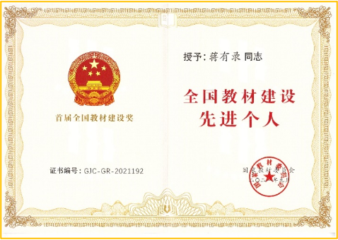 近日,教育部公布首届全国教材建设奖获奖名单,我院蒋有录教授获“全国教材建设先进个人”称号。