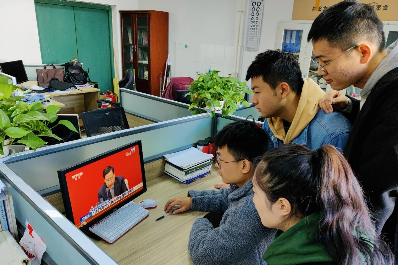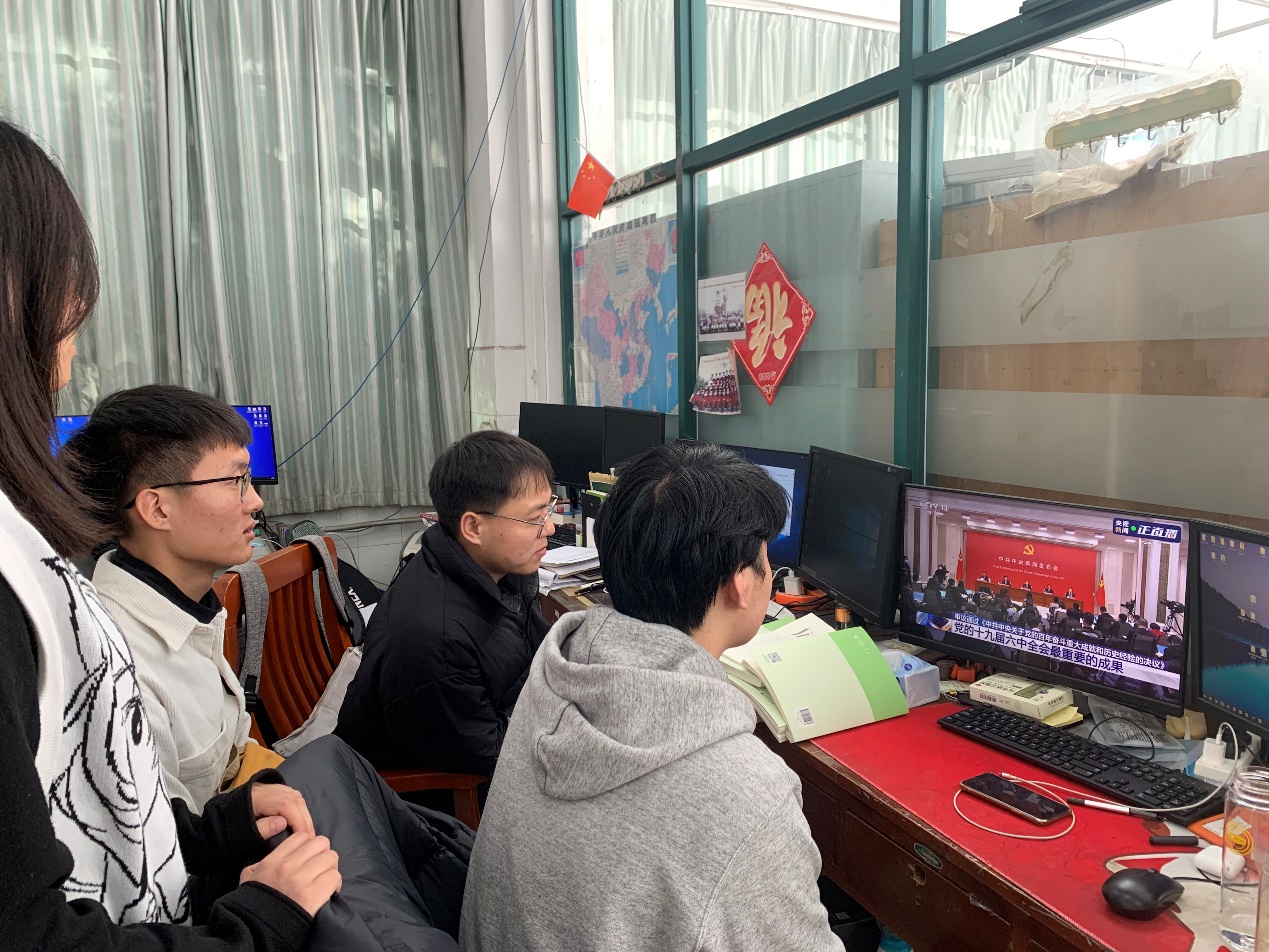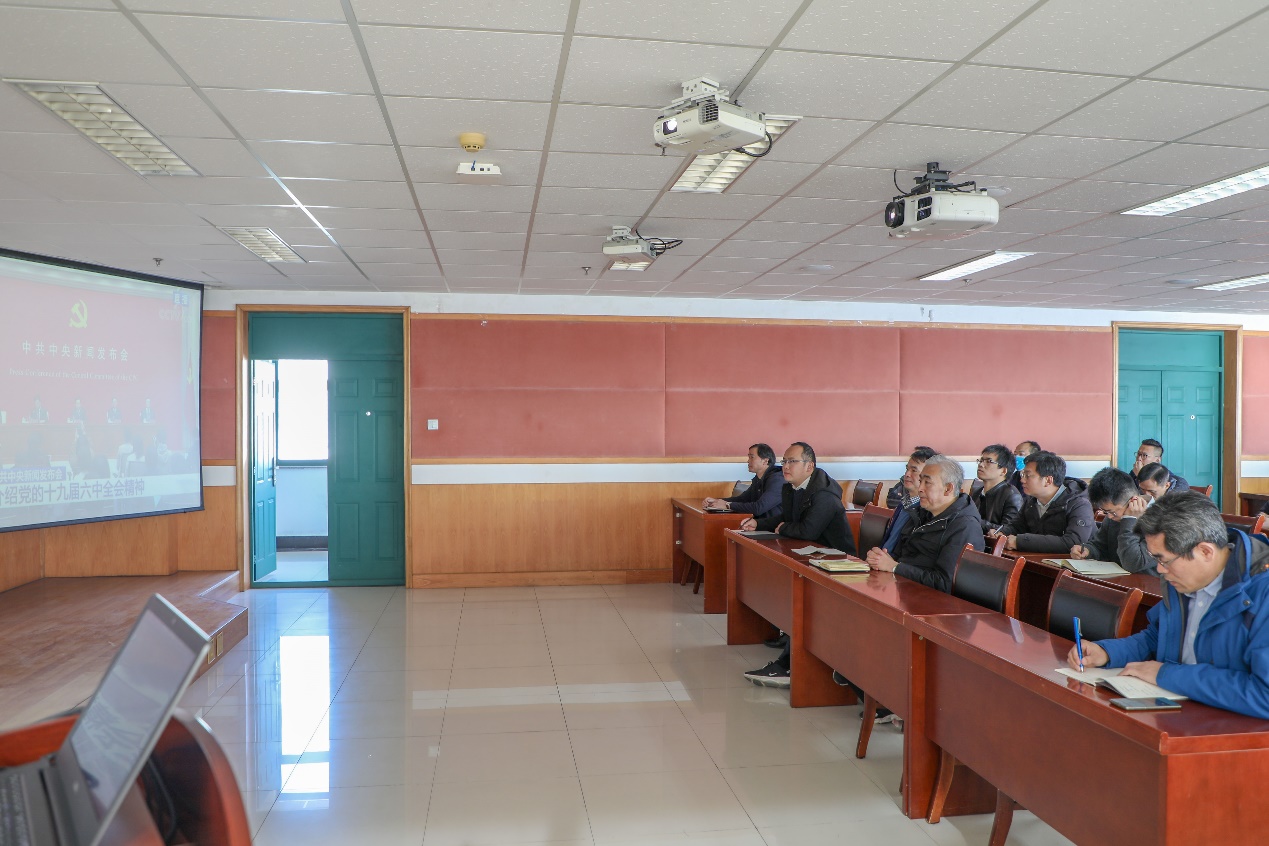 11月12日,中共中央举行新闻发布会,介绍党的十九届六中全会精神。学院党委及各基层党支部通过集体收看、个人观看、学院大厅宣传屏同步直播等多种形式,组织学院教职工党员、学生党员收听收看新闻发布会现场直播,学习全会公报内容,认真领会党的十九届六中全会精神。