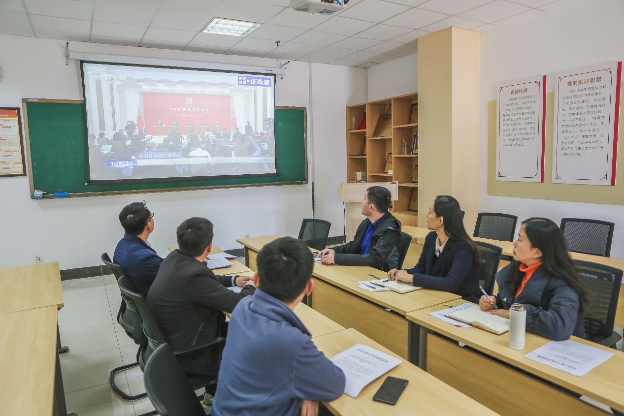 学院机关党支部组织党员收看新闻发布会 邹桂红摄影