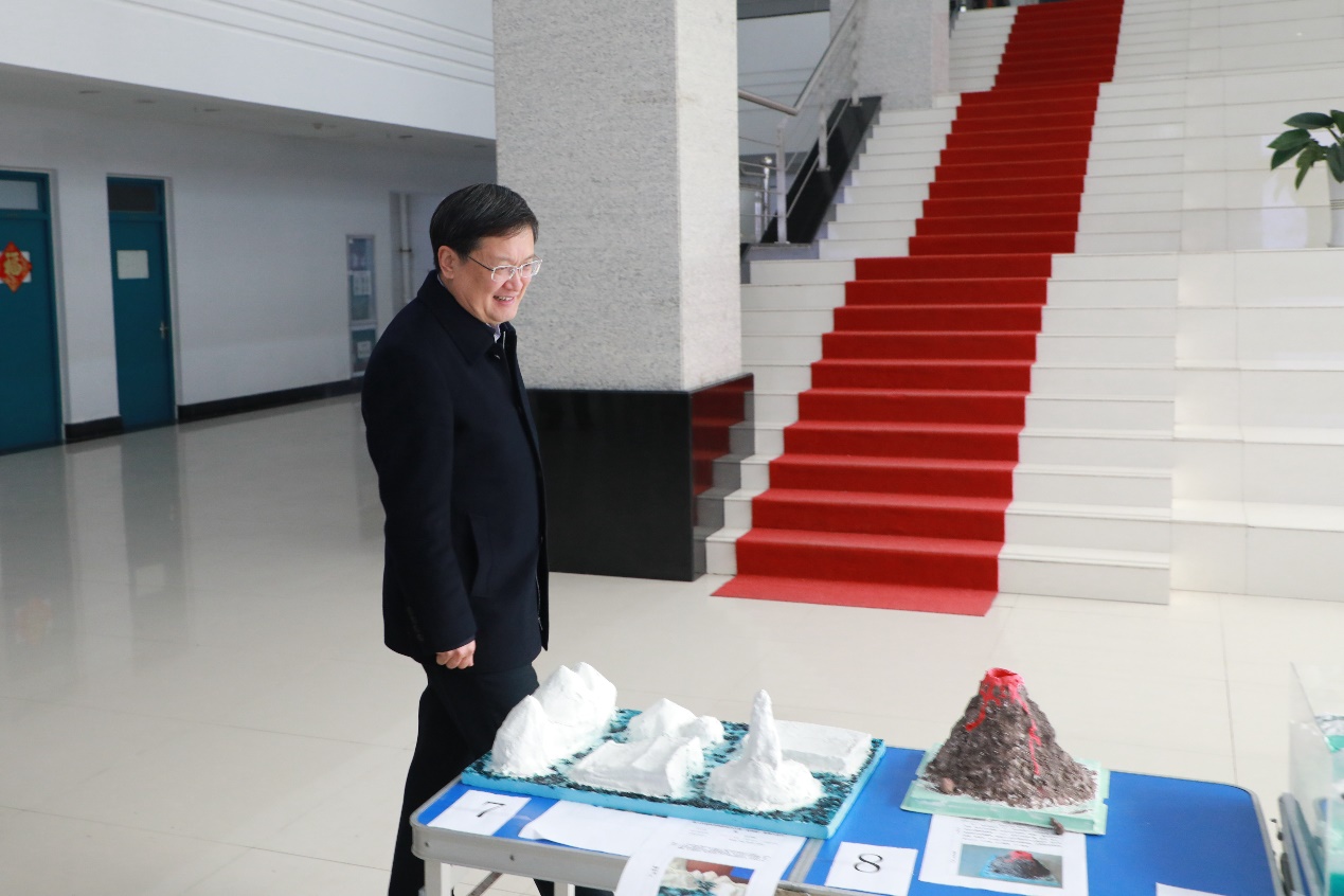 会前,王勇书记在学院大厅参观了学院地质模型大赛作品并与参会人员合影留念。