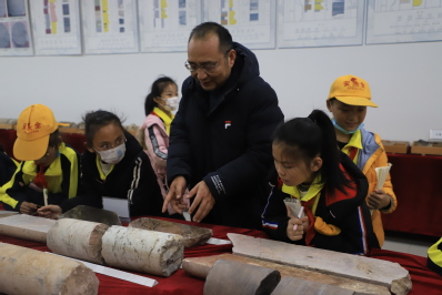 “教授在我面前打开了一个新的世界,一个充满许多知识宝藏的世界,我想马上投入到探索之中去。”六年级学生李泽对眼前的地质知识充满了好奇。永利yl23411集团教授吴智平、董春梅分别带领一队学生参观学院工科楼C座地质博物馆,以幽默亲切的语言向学生们详细介绍各类地质标本,带领学生们见识了大地的演变,岩石生物的进化,地学知识的丰富多彩。