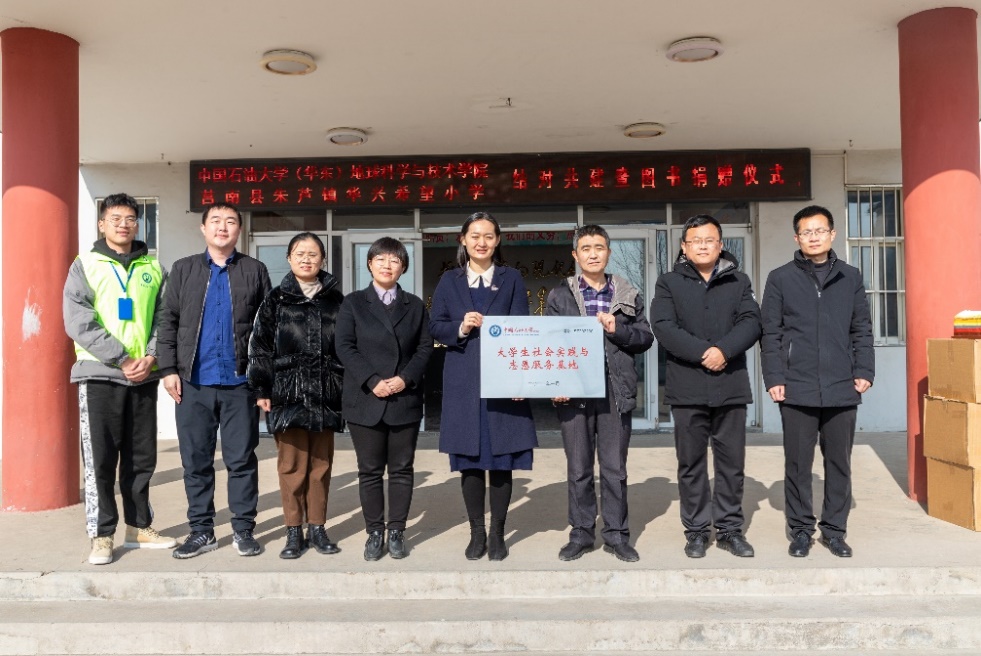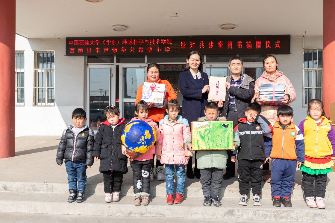 郑珊珊代表学院党委和春晖志愿服务队向小学捐赠图书、文具等