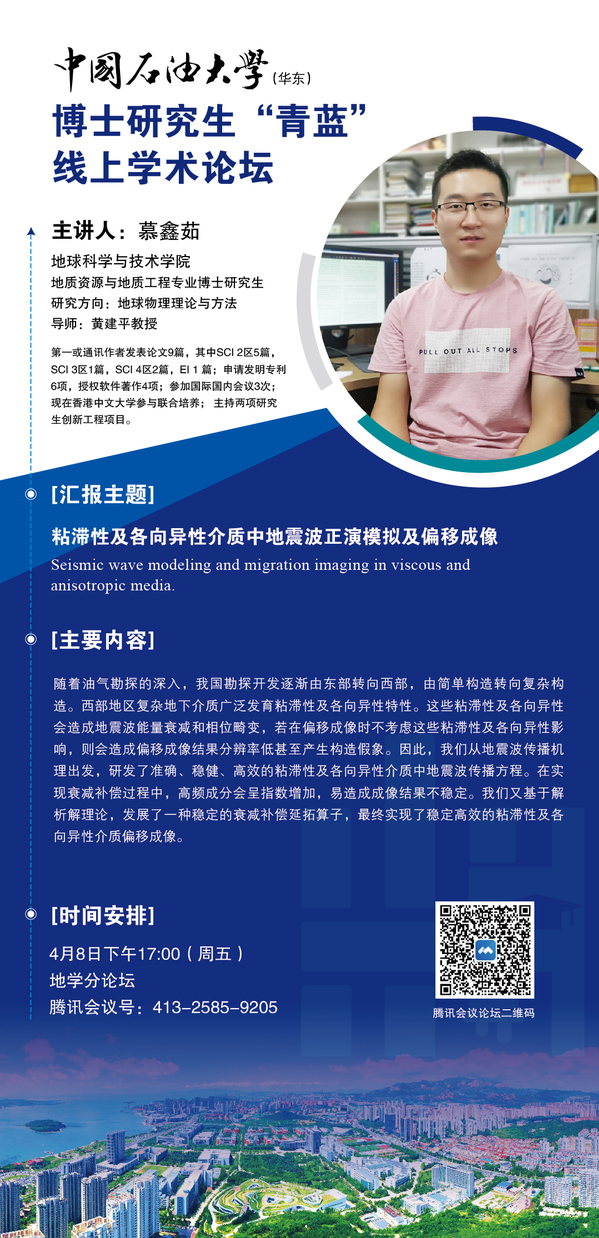博士研究生“青蓝”线上学术论坛-地学院分论坛第2期-慕鑫茹博士-粘滞性及各向异性介质中地震波正演模拟及偏移成像