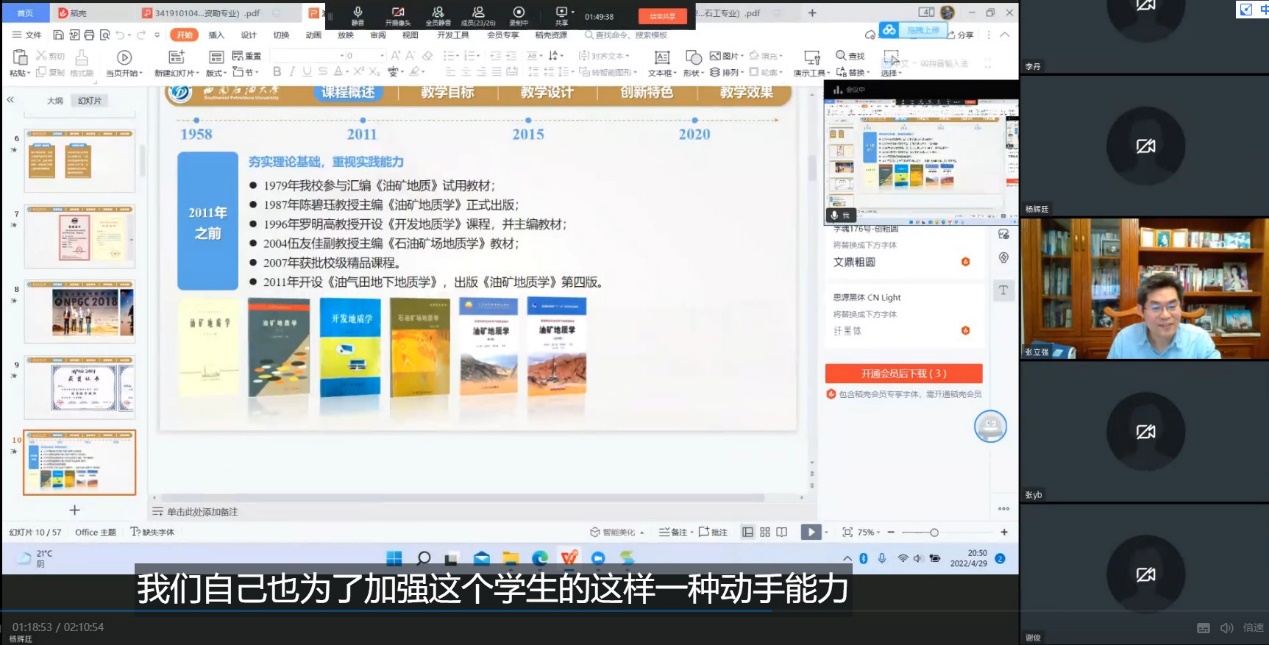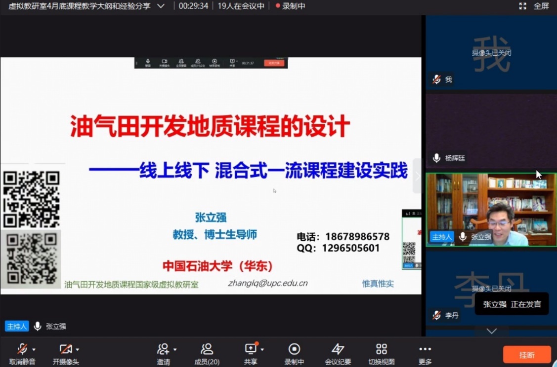 为响应教育部落实立德树人根本任务,加快教育高质量发展的号召,落实教育部加快推进虚拟教研室试点建设的工作要求,油田开发地质课程教育部首批虚拟教研室建设点从今年3月开始开展了系列研讨活动,规划了教研室2022年工作重点、规范了教学活动时间和相关制度。按照计划,4月29日,该教研室开展了教学大纲、教学经验分享研讨活动。来自yL23411永利集团、山东科技大学、西北大学、西南石油大学、东北石油大学、西安石油大学、中国地质大学(武汉)、中国石油大学(北京)等12所高校的教研室骨干30余人参加了本次研讨活动。