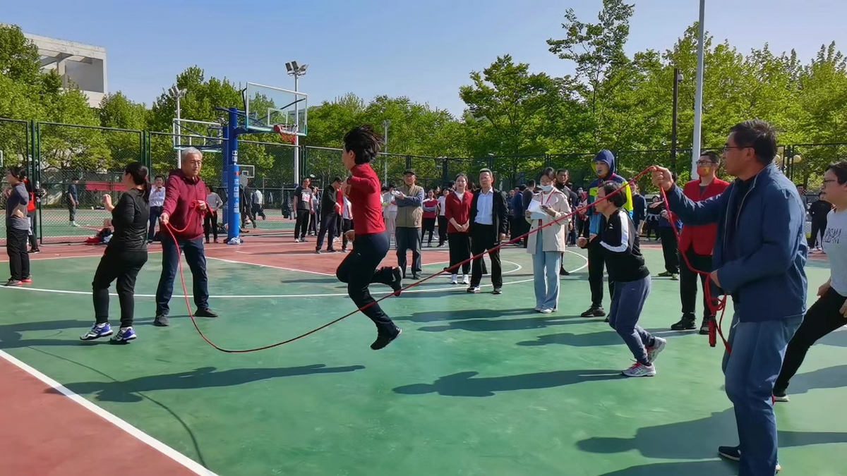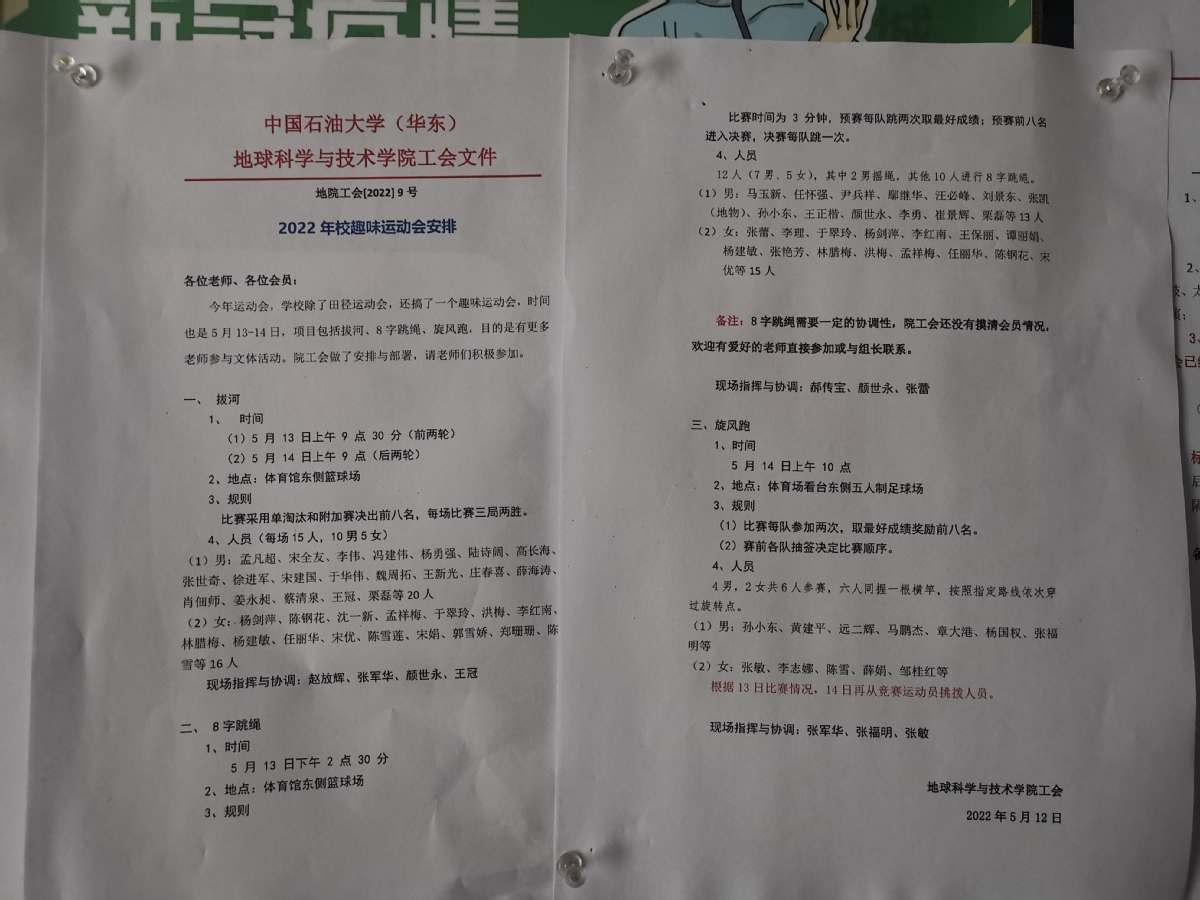 今年运动会,学校除了田径运动会,还搞了一个趣味运动会,时间也是5月13-14日,项目包括拔河、8字跳绳、旋风跑,目的是有更多老师参与文体活动。
