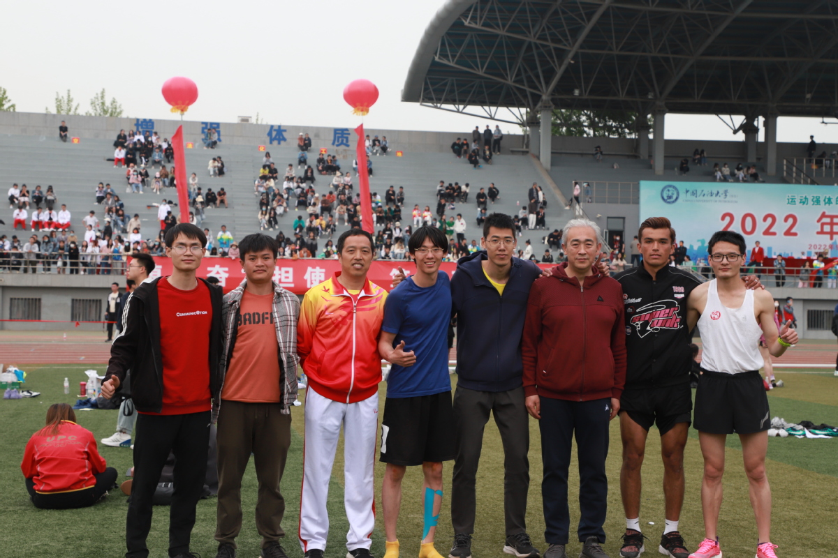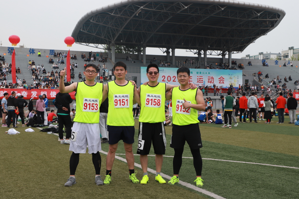 赛后校党委副书记、纪委书记吴强明,副校长周鹏、校工会主席王德钊与地院师生合影。运动会取得圆满收官,各位老师明年再见!