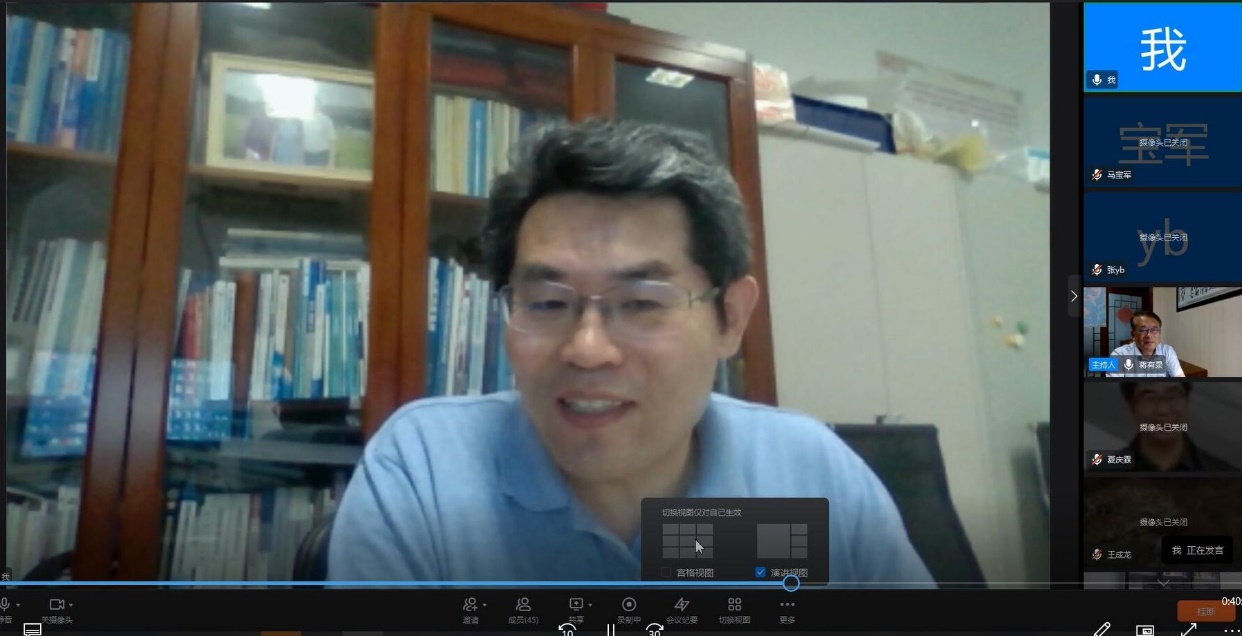 蒋有录教授进行了总结发言,他提出课程思政要分阶段实施,建议年轻教师做好课程和课程思政的设计;鼓励年轻教师要热爱教学,在课程思政等方面下功夫,不断提升教学效果。
