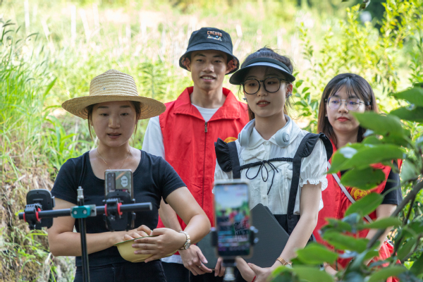 “农产品直播过程非常艰辛,但是想到自己的工作能够帮助到村民,内心十分欣慰”,实践队队员冯英琪作为“主播”在直播过后激动地说。直播当天,开州地区户外40度的高温,为了达到更好的效果,实践队员一起在李子林里进行直播,共同解决直播语言、客户信任度等问题。