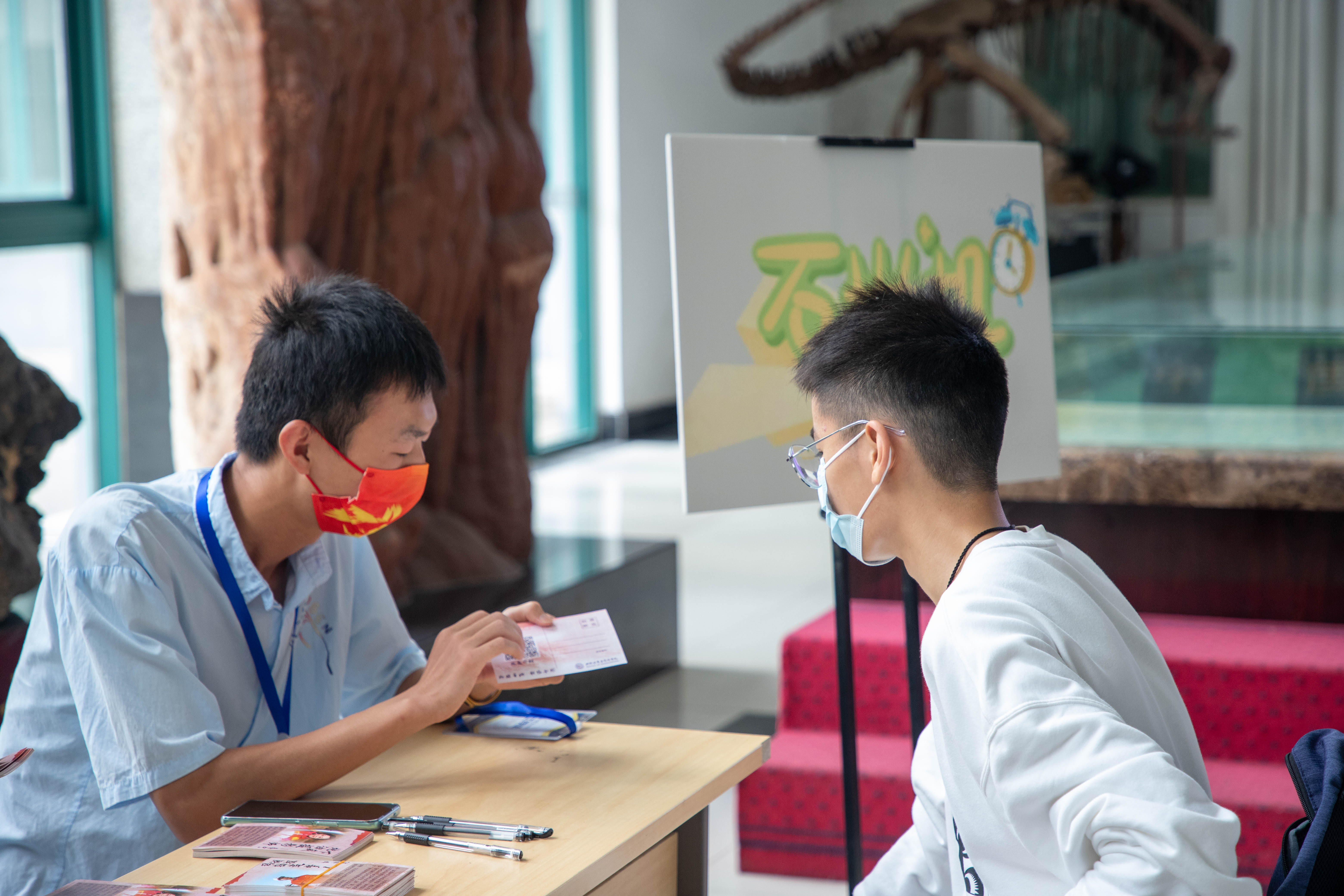 在报到现场,学院开展时光寄语——“写给四年后的自己”、“送你一张拍立得,开启地院新生活”、“人生若只如初见,我和地学碰个面”等特色迎新活动。其中,为新生定格大学的第一抹微笑的活动受到新同学们的广泛好评。新生们纷纷拍照留念,定格下初入校园的美好瞬间。地质学专业2202班林姝含表示,“当我拿到那张照片的时候,仿佛那是一段时光寄语,定格的微笑也是我对大学生活的无限希冀。”工科楼C座大厅摆放的一台“时光机器”同样吸引了新生们的关注,同学们在印有油气地学领域前辈榜样的明信片上写下对为未来的憧憬。来自甘肃长庆油田的“油三代”、资源2022级本科新生段越奇在明信片上写道,“我一定会在石大擎起父辈们的精神火炬,传承石油精神,一步一步、脚踏实地不断锤炼自我,为我国油气勘探事业拾柴添薪!”一张张入学时的心愿卡片,不仅承载着薪火相传的勘探精神,更寄托着对未来的无限期待。迎新现场还有一款“私人定制”——“勘未来”大学生发展咨询室吸引很多同学前来“解锁”,只需要扫码关注即可方便预约,其帮助新同学们明确自身发展需求,提高自主规划能力,合理利用学院资源。