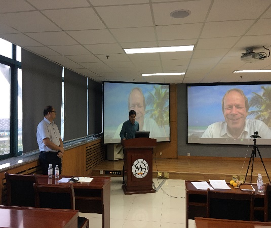 报告会上,王健副院长首先为活动开幕式致辞。随后刘可禹教授作为报告召集人分别邀请来自澳大利亚科廷大学的Klaus Regenauer-Lieb教授和日本东京大学的梁云峰教授作了题为《An ultra-supercritical CO2 Electro-geothermal Battery Underground GW storage of Power with CCUS》的线上报告和题为《石油数字化及石油工程技术的革新—浅谈Digital Oil在低碳智能化效益开发中应用》的线上报告。现场座无虚席,报告结束后,现场师生纷纷提问,主动与主讲专家线上交流互动。