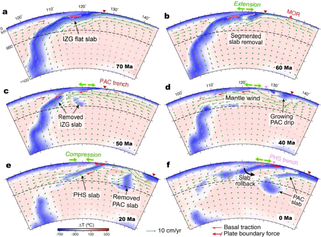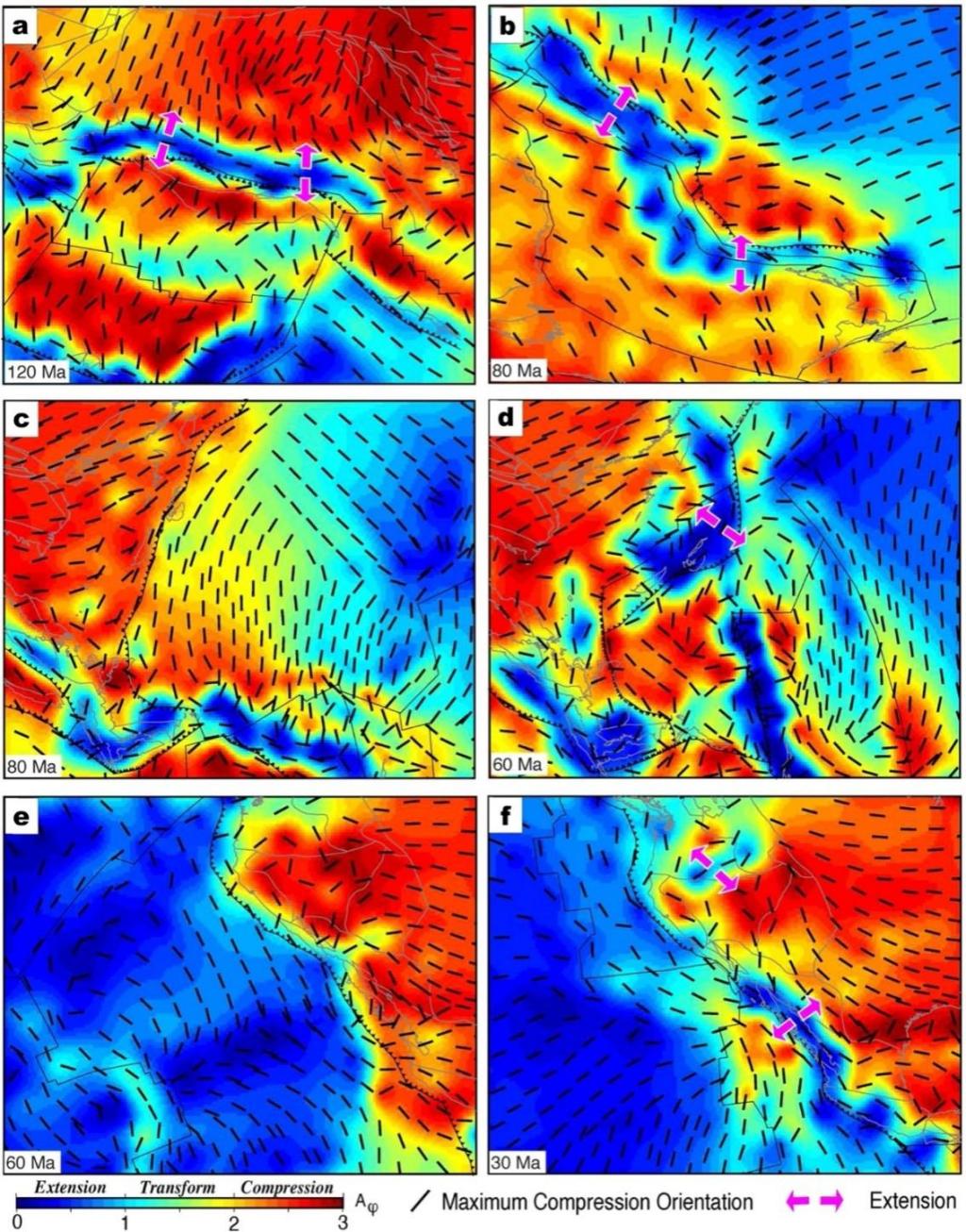 地球浅部盆地发育与深部地质过程的耦合关系一直是地学研究领域的热点和难点问题。洋中脊俯冲是板块构造演化中所不可避免的过程,其导致深部地质过程发生重要改变,由此也必将引发一系列重要的地质效应。通过对比全球不同地区地质记录可以发现,洋中脊平行于海沟的俯冲与弧后伸展存在着很好的匹配关系,而这与年轻洋壳俯冲往往导致上覆板块挤压的传统认识不相统一。因此,厘清洋中脊俯冲前后的动力学过程与浅部应力特征是解决这一问题的关键。