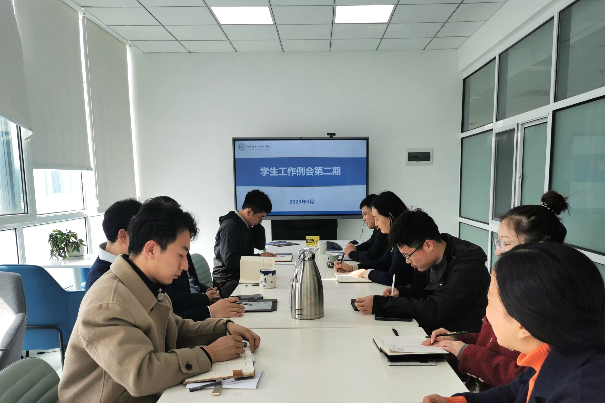 3月8日下午,学院学生工作队伍在工科楼C座勘探厅召开本学期第二次学生工作例会,党委副书记郑珊珊及全体专兼职辅导员参加,研究生辅导员杨建敏主持会议。